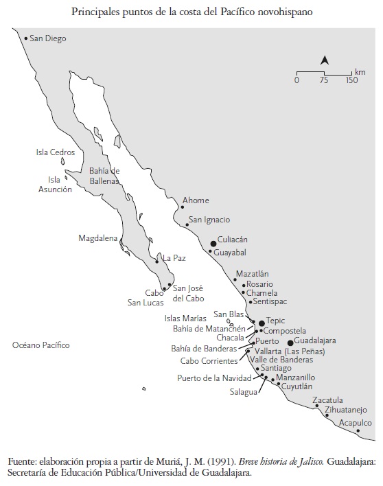 Desde la conquista de México se aprecia un interés por aquellas costas para servir de punto de partida de las expediciones que se dirigían a las Californias o a las islas de la especiería en Asia. Muy pronto Acapulco se convirtió en uno de los nudos principales del comercio pacífico, relegando a un segundo plano buena parte del litoral occidental mexicano, donde la falta de vigilancia y protección de sus costas favorecieron la piratería, el contrabando y el comercio ilícito intercolonial. No obstante, los puertos de Nueva Galicia no solo fueron objeto de piratas o de intercambios ilegales, sino que también sirvieron de base para las expediciones a las Californias, para la expansión colonizadora del noroeste novohispano, o para la explotación de los bancos de perlas.
