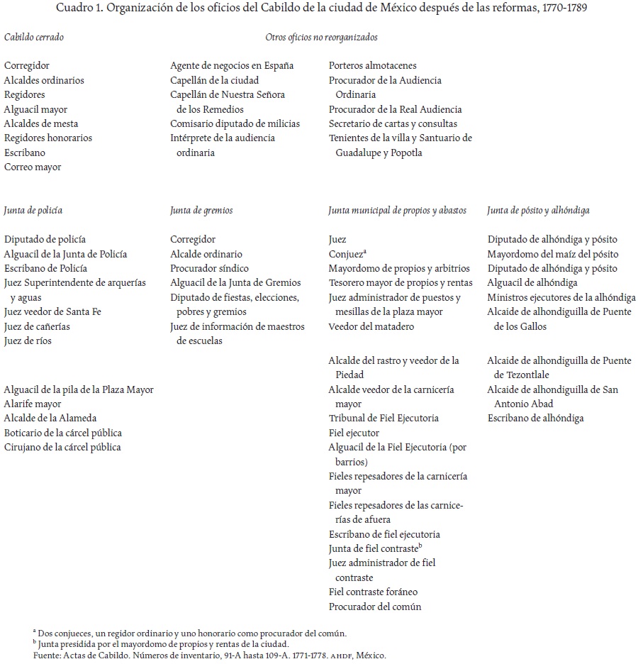 Key words: Bourbon reforms; city council; Mexico City; honorary councilors; Cadiz Constitution.