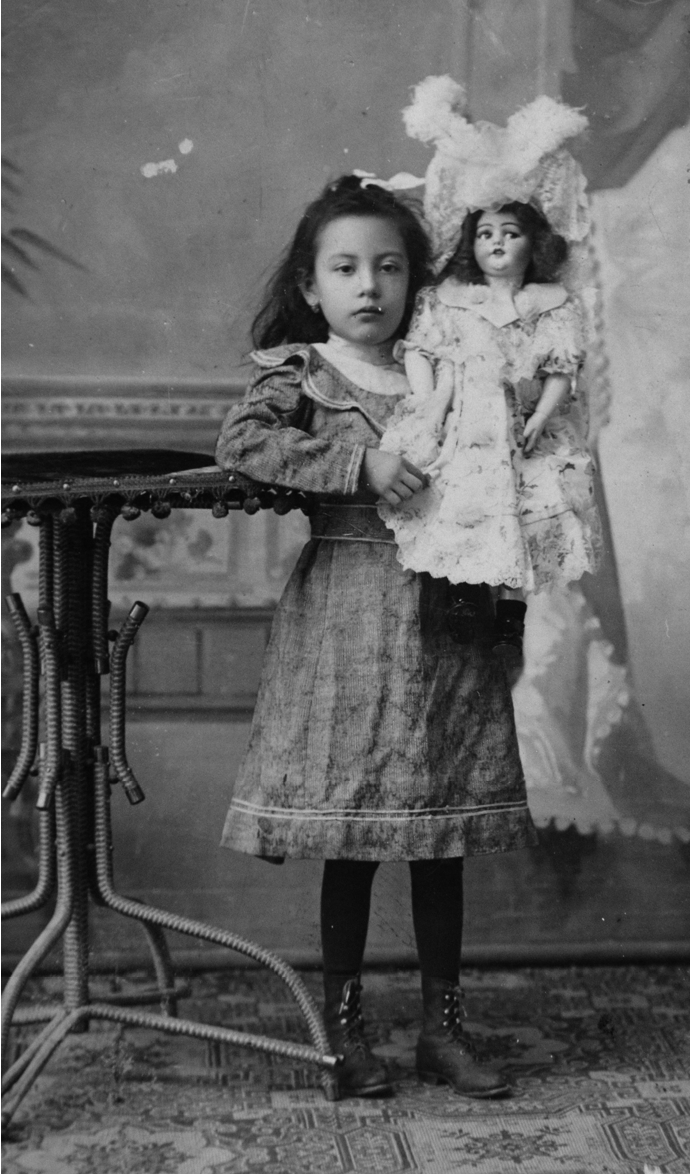 En la primera infancia, los niños y niñas suelen representarse asexuados, es decir, sin elementos que distingan su género. Posteriormente, se fotografían de acuerdo con las identidades que deben ir tomando según los parámetros de la sociedad decimonónica (Valencia, 2017, pos. 2326). Así, los niños se retratan con actividades del campo identificadas como masculinas, y las niñas aparecen con flores relacionadas con la feminidad o con muñecas en una clara asociación con su posterior función de madres.