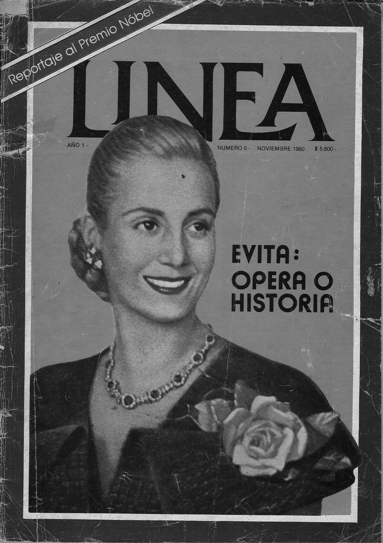 Significativamente, la edición contemporánea de Línea con el reportaje ostenta como tema de portada la ópera rock Evita, de Andrew Lloyd-Weber, lanzada en 1978 y a punto de estrenarse en España.18 La revista comenta la versión inglesa original para efectuar una reivindicación de la significación sociopolítica de la dirigente, sugerida en el titular de portada: “¿Ópera o historia?” Le permite, igualmente, colocar en los kioscos su efigie en la portada, contrariando la autocensura imperante en la prensa sobre la iconografía peronista (véase imagen 1).