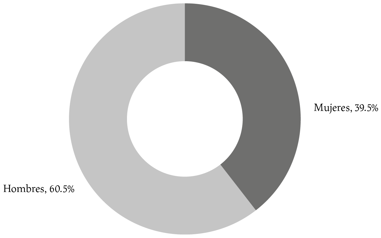 En la edición 2020 el anuario del IMCINE presentó series históricas a partir de 2010, que incrementaron 37% la contribución femenina a lo largo de esa década. En 2022 las mujeres constituyeron 39.5% de las personas involucradas en actividades de producción cinematográfica y audiovisual en México (IMCINE, 2023. p 12). La gráfica 1 refleja esta evolución y evidencia la masculinización de dicho ámbito.