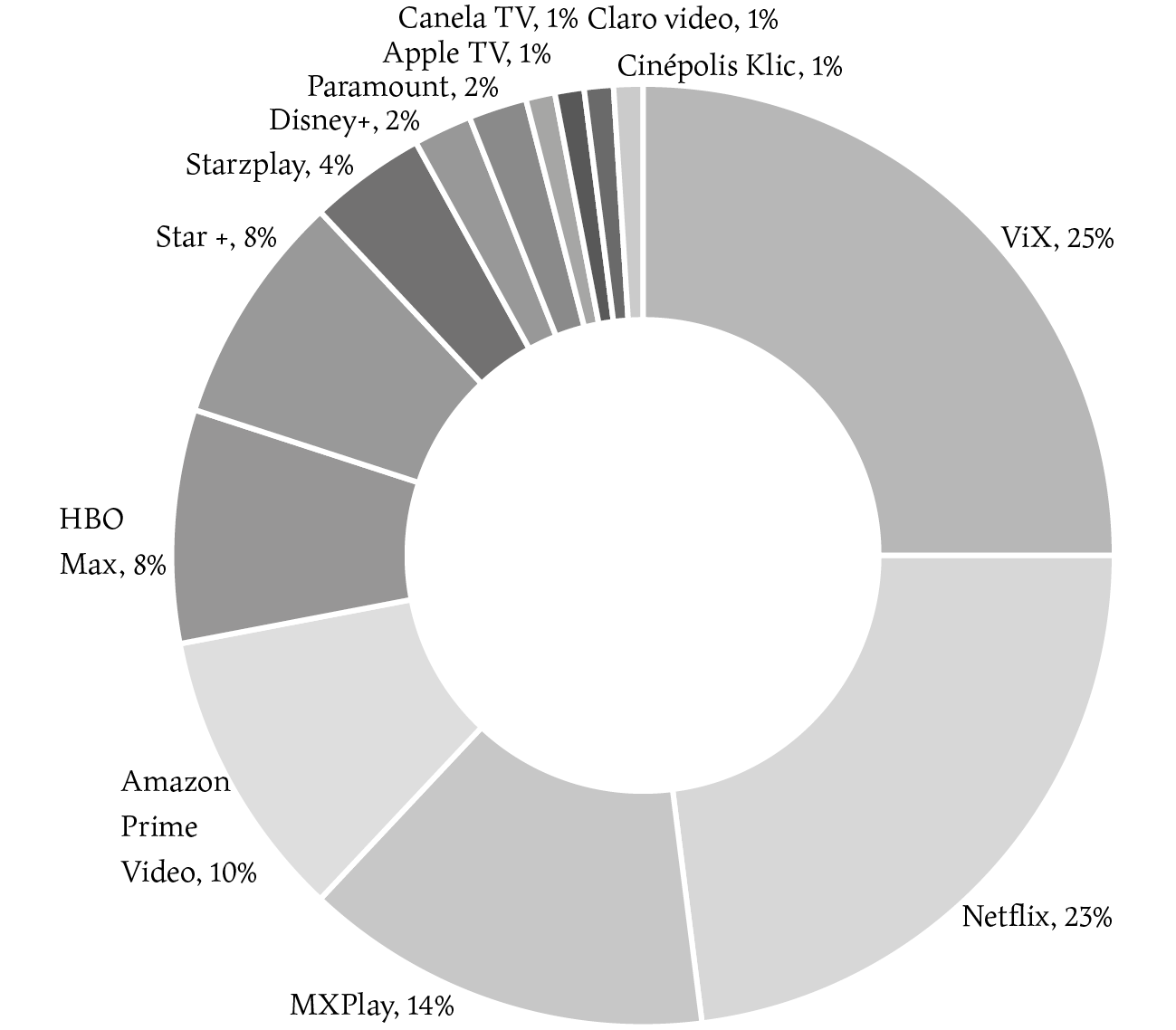 El caso de México, por su asentada trayectoria audiovisual y por ser el país que concentra más número de hispanohablantes, resulta especialmente interesante; de hecho, es la “capital de la producción audiovisual de América Latina” por número de proyectos en el último año, inversión y empleo (Lambertucci, 2023). Junto a Argentina y Brasil, representa la industria audiovisual más grande de Latinoamérica, con ingresos conjuntos de 20 000 millones de dólares en 2021 (BID, 2023, p. 8). Además, el consumo en streaming alcanzó en Latinoamérica a 53 000 000 de suscriptores en 2020 y, según el informe Latin America SVOD Forecast, llegará a 139 000 000 en 2027 (Prensario Zone, 2023).