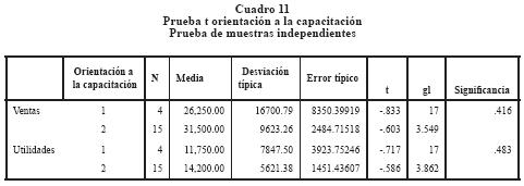 La explicación del por qué la orientación estratégica hacia la capacitación no tuvo un efecto significativo sobre el desempeño de los negocios de cerámica se puede centrar, posiblemente, en que se consideró esa orientación parte de la planificación proactiva, que como dice Burack (1990) conduce a la renovación crecimiento y desarrollo de la fuerza de trabajo. Asimismo, se midió con reactivos que permitieran determinar si a los productores les interesaba encontrar nuevas forma de organización, nuevas formas de distribución de los productos, búsqueda de nuevos mercados y con que frecuencia realizaban cambios en la organización del trabajo. Dichos reactivos no pasaron la prueba de validez y sólo quedaron los cursos tomados.