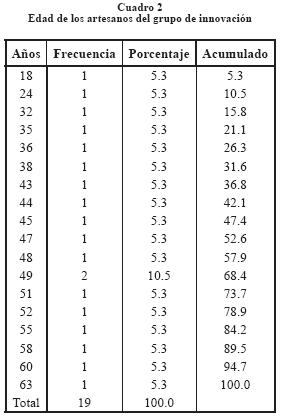 El trabajo empírico se llevó a cabo en 19 negocios de alfarería con una distribución de edad de los dueños del negocio, como la que se muestra en el cuadro 2, de los cuales el 15 % son hombres y el 85% son mujeres (ver cuadro 3). La escolaridad se muestra en el cuadro 4, donde la mayoría tiene estudios de primaria y sólo dos de bachillerato.