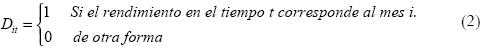 Debido a que la prueba para el efecto enero se basa principalmente en el uso de variables dummy estacionales, se crearon 12 variables dummy estacionales (una para cada mes) que toman los siguientes valores: