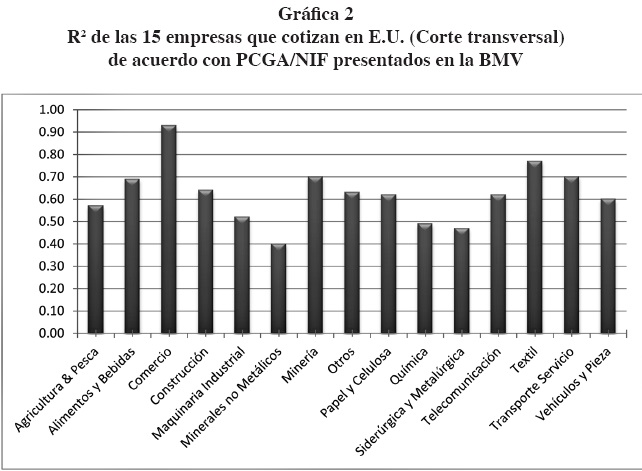 En las empresas que cotizan en Estados Unidos se encuentra una disminución en la R2 en el segundo bloque de tiempo. Estos resultados sugieren que las empresas globales podrían estar más interesadas, por tanto, en tener un mayor impacto por estándares americanos o internacionales que por los nacionales. Este resultado es consistente con estudios previos de empresas mexicanas, tal como el de Palacios et al. (2006).
