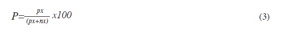 En donde la polaridad P es igual al número total de tweets positivos (px) dividido entre la suma de los tweets positivos (px) y negativos (nx); el resultado es multiplicado por cien para considerar los datos en términos de porcentaje. Entre más cercano sea a 100%, mayor es la polaridad de sentimiento positivo; entre más cercano sea a 0%, menor es la polaridad de sentimiento positivo, es decir, es mayor la polaridad de sentimiento negativo.