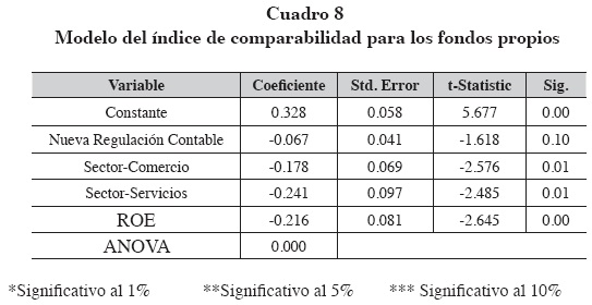 El modelo obtenido para el índice en valor absoluto de los fondos propios se recoge en el cuadro 8.