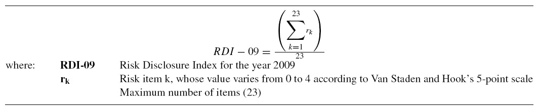 From this analysis a weighted index, called Risk Disclosure Index (RDI), was calculated as follows:
