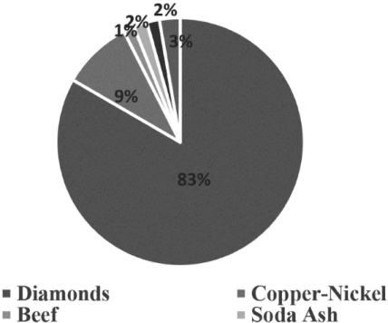 Although Botswana is hailed as an African miracle (Samatar, 1999) and a significant exception of how the natural resource curse must not be the fate of resource endowed economies (Sarraf and Jiwanji, 2001), the debate is not settled. Iimi (2006) has empirically analysed the impact of mineral resources in Botswana economic growth and suggested that the country benefitted from coexistence of good governance and abundant diamonds to materialise economic growth and deviate from the curse. Furthermore, Auty (2001) pointed out that Botswana has experienced success due to coherent economic policy that resulted in a rise in social welfare and concluded that despite the success it is still premature to judge Botswana wholly successful. On the contrary, other studies have proposed that Botswana had as suffered from a mild form of the Dutch disease because of high unemployment at the start of its diamonds boom (Mogotsi, 2002). The study found a positive relationship between government recurrent spending and real effective exchange rate appreciation during the boom but not during the pre- and post-boom periods and concluded that this causes difficulties in reducing government recurrent expenditure post-boom. This suggestion correlates with Love (1994) observation that mineral abundance, particularly diamonds, affected agriculture through a rise in the local currency (Pula) against South African currency (Rand) because of mineral boom and rapid growth of government spending. Moving somewhat away from the debate, the 2008/09 global financial turmoil resulted in a slowdown of economic activities in Botswana, indicating the vulnerability of the economy to global economy tremor. Real GDP plummeted 6%, employment in mining and quarrying fell by 9.3%, diamond mines closed their operation for three months in the course of 2009 and these measures were unprecedented in the history of Botswana economy (Magang, 2015).