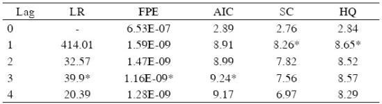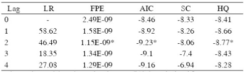 *Indicates lag order selected by the criterion at 5% significance level.