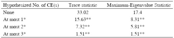 Table 3 Johansen Cointegration test results.