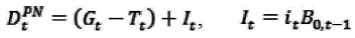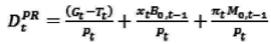 En (5) se indica que la suma del valor presente de cada uno de los superávit primarios esperados (es decir, la diferencia entre ingresos