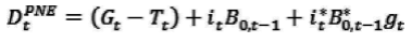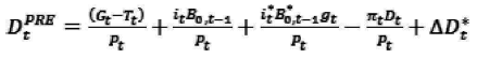 Blanchard et al, (1990) sugieren que el criterio (5) es adecuado cuando el valor presente de los déficits primarios (y el valor presente de la deuda) se obtienen a partir de una tasa de descuento idéntica a la diferencia entre la tasa de interés real y la tasa de crecimiento de la economía; los autores reescriben la ecuación (5) como: