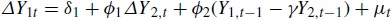El término (Y1,t−1−γY2,t−1) es conocido como término de corrección de error. Dado entonces que Y1,t−1 ; Y2,t−1 están cointegradas, la combinación en el paréntesis será I(0), aun cuando sus predecesoras no lo eran. Una vez planteada esta corrección, los procedimientos de mínimos cuadrados e inferencia estadística vuelven a ser válidos.