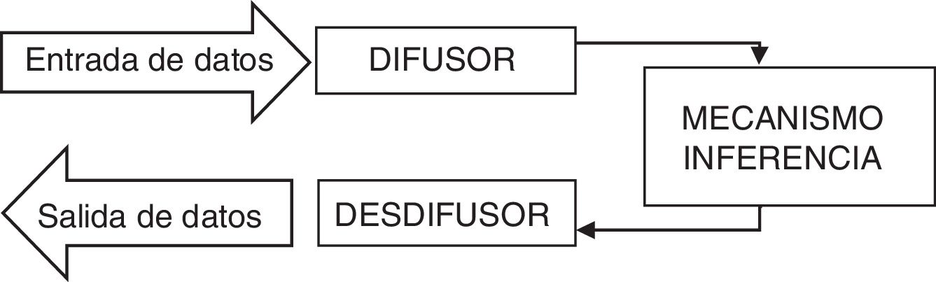 Para su comprensión, el bloque difusor es ubicado de acuerdo con el grado de pertenencia a cada uno de los conjuntos difusos mediante la función característica. Luego se ingresan los datos de la variable a analizar con sus valores concretos; se obtienen como datos de salida los grados de pertenencia a los conjuntos estudiados.
