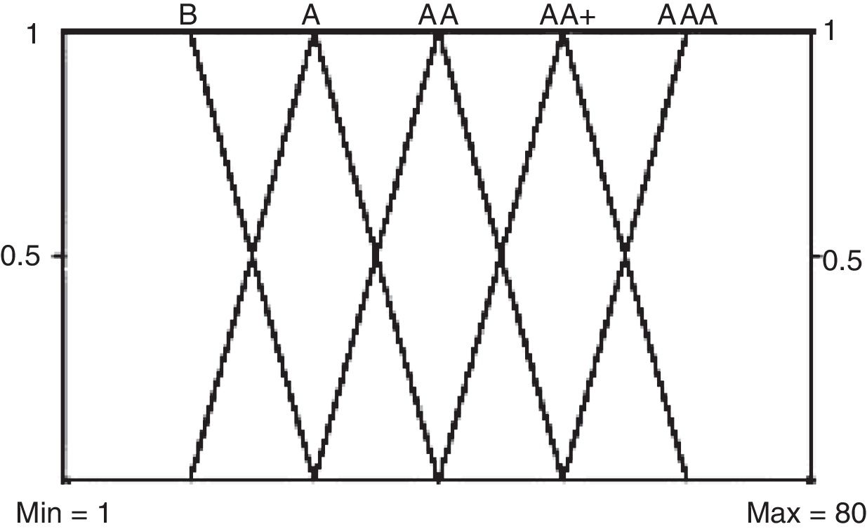Como se observa en la tabla 8, las variables de salida de lógica difusa otorgan un rango numérico de 40 que ubica a la entidad financiera dentro de las cualidades Regular y Muy Buena Plus, generando una curva de pertenencia hacia categorías A, AA y AA+ como lo muestran las tablas 11-13, (12) y la figura 6.