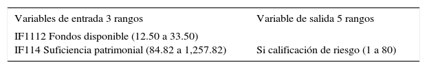 Variable de entrada: subconjuntos de referencia por indicador; variable de salida: subconjuntos por calificaciones crediticias.