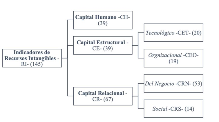Figura 1 Indicadores por cada categoría en la revelación de recursos intangibles.