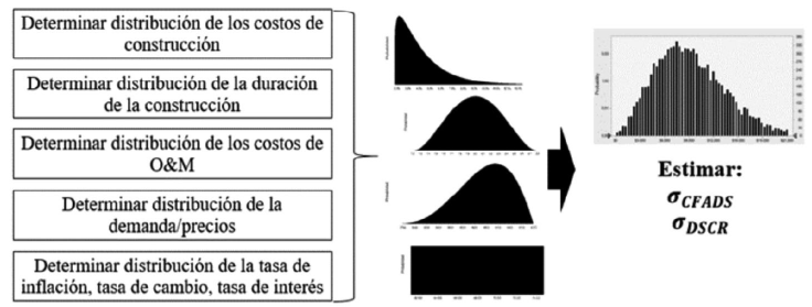 Dado que el comportamiento del DSCR está fuertemente relacionado con el riesgo de crédito del proyecto, el conocimiento de la distribución del DSCR es suficiente para su estimación. Si se asume que la dinámica estocástica del DSCR sigue un proceso lognormal, se tiene