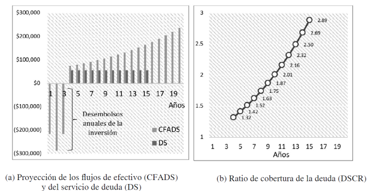 De esta forma, todas las consecuencias económicas del proyecto son atribuidas directamente al SPV. Por tal motivo, el reembolso de la deuda depende principalmente de la capacidad del proyecto para generar flujo de efectivo3, lo cual determina su capacidad crediticia. Los flujos de efectivo se consideran como la principal fuente de recursos para cubrir las obligaciones de deuda contraídas, es decir, una vez el proyecto ha cubierto sus requerimientos operativos (costos, mantenimiento, gastos, impuestos, entre otros) a partir de los ingresos generados. Así, el efectivo disponible debe ser suficiente para pagar el servicio de deuda (capital más intereses). A esto se suma la ausencia de antecedentes crediticios del proyecto que sirvan como base para una decisión de financiación como indica Cappon et al. (2018).