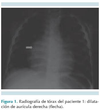 Resultados: todos los pacientes incluidos tuvieron datos clínicos de insuficiencia cardiaca manifestada, principalmente, por disnea de medianos esfuerzos en los escolares y disnea a la alimentación en los lactantes, así como polipnea y diaforesis. Los signos más importantes fueron hepatomegalia, ascitis y ritmo de galope. La cardiomegalia por dilatación auricular derecha fue el dato radiológico más frecuente. Los datos electrocardiográficos más frecuentes fueron dilatación de ambas aurículas, infradesnivel del segmento ST y ondas T negativas. El ecocardiograma mostró en todos los casos dilatación biauricular y patrón restrictivo.