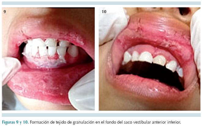 Las secuelas principales son: microstomia,16 deformidades morfológicas del labio, anquiloglosia, alteraciones en el desarrollo óseo y oclusal,17 necrosis pulpares y defectos en el desarrollo dental.