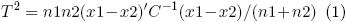 donde: n1, n2 = número de observaciones asociadas con los vectores de medias x1 y x2. C = matriz con las estimaciones conjuntas de varianzacovarianza de los n1 y n2 datos.