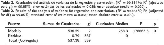 Los resultados mostraron alta correlación entre el método destructivo y el no destructivo (análisis de regresión y correlación; r = 0.999; p < 0.001), lo cual se observa en el concentrado de datos del análisis de varianza de la regresión y correlación (Tabla 2). El estudio confirmó la utilidad y conveniencia de usar la técnica de SPAD para la determinación no destructiva del contenido de la clorofila en la hoja de albahaca, principalmente cuando una alta cantidad de muestras o una población considerable debe ser analizada.