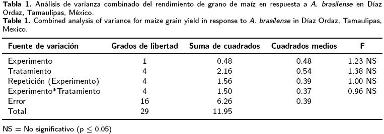 Effect of Azospirillum brasilense on maize yield in northern Tamaulipas, Mexico