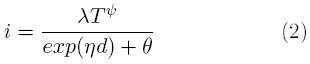Model II. This model is a modified version of model I, where an additional parameter is added with the purpose of improving the estimation of rainfall intensity. As before, intensity, duration and return period of rainfall are related in a family of curves (equation 2):