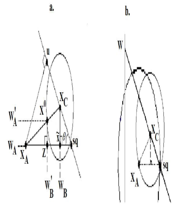 We say that the geometric location of the mayor’s ideal point x A is determined by his objective in mobilizing the electoral mass needed to win the next election and thus co-opt the mayor’s office. Therefore, it is clear to the mayor not only that his ideal point x A should be located in segment [(0, W A ),sq] given his electoral objective, but more importantly, that his ideal point x A is clearly established before beginning the political negotiation process with the council.