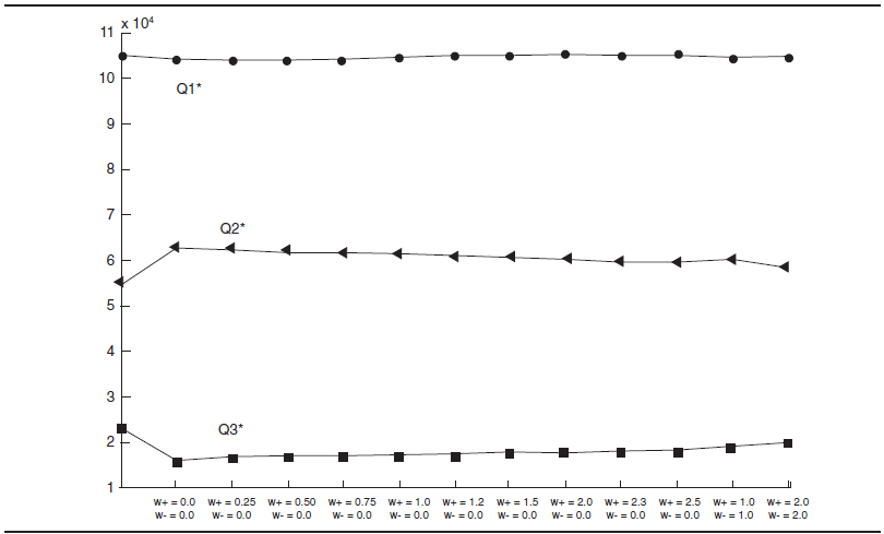 Nota 3.1. En el caso de las funciones de utilidad generales (no necesariamente lineales) se puede garantizar que si la distribución de población equilibrada Q* está determinada únicamente, lo mismo es válido para el patrón de flujos equilibrados s* (véase Kalashnikov et al., 2006).