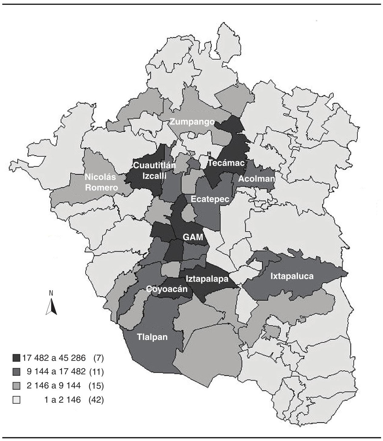 Las jurisdicciones con mayor captación de personas son: Chimalhuacán, Tultitlán, Ecatepec, Atizapán y Coacalco. Por su intensidad demográfica destaca el municipio de Cuautitlán.