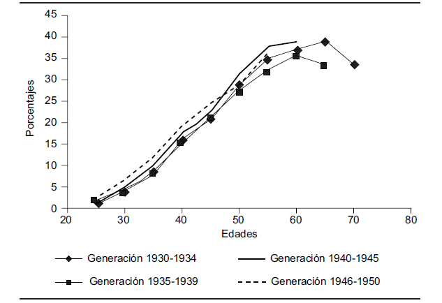 GRÁFICA 2 Tasas de propietarios de residencias secundarias según la edad y la generación
