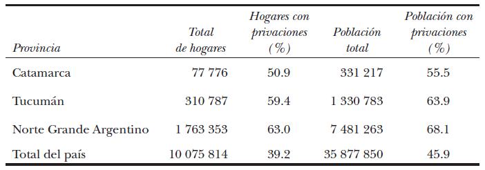 Los hogares con privación en Catamarca y Tucumán