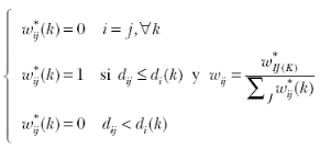 donde 𝑤 𝑖𝑗 ∗ 𝑘 es un elemento de una matriz estandarizada y 𝑑 𝑖 𝑘 es la distancia crítica o corte definido para la unidad i.