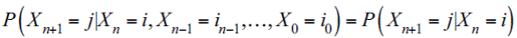 Este proceso estocástico se llama cadena de Markov. Se dice que dicha cadena es homogénea si el lado derecho de la Ecuación 6 es independiente de n. La Ecuación 7 muestra las propiedades de Markov para todas las variables i, j (Yin y Zhang, 2010).