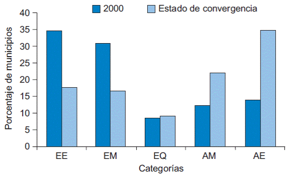 Con todas sus limitaciones y restricciones, este trabajo permite atisbar que el perfil de la situación de largo plazo de las TNMR es casi el inverso del perfil de 2000, lo que implica un proceso de convergencia positiva (en el que la mayoría gana, seamos reiterativos, la migración interna es un fenómeno de suma cero) que cambia de trayectoria: de las categorías de expulsión a las de atracción. Estos cambios migratorios develan un proceso de redistribución progresiva de las condiciones para vivir/trabajar en el territorio y en el tiempo, que favorece a los municipios más desaventajados. El proceso de convergencia parece débil, pero persistente en el largo plazo.