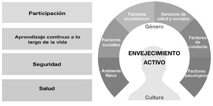 Figura 3 Pilares del envejecimiento activo y sus factores determinantes