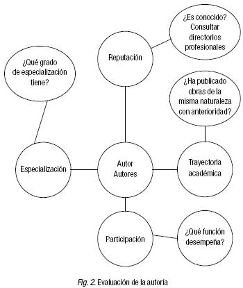 1. Reputación. En primer lugar, hay que averiguar de quién se trata, el nombre del autor y el conocimiento del mismo por parte de la comunidad científica más inmediata. Cuando se tienen dudas existen directorios de personas que pueden satisfacer esa necesidad informativa. Ahora bien, la sonoridad de un personaje no es garantía per se suficiente. Por ejemplo, en determinadas obras ocurre que las editoriales,