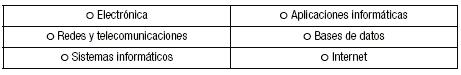 • Áreas temáticas generales para el estudio; se definieron las siguientes: computación; gestión tecnológica; electrónica (aplicada el área de estudio); informática (aplicada al campo de estudio); sistemas y computación (considerada desde el campo científico); telecomunicaciones y redes (desde el punto de vista de su interacción con sistemas y computación).
