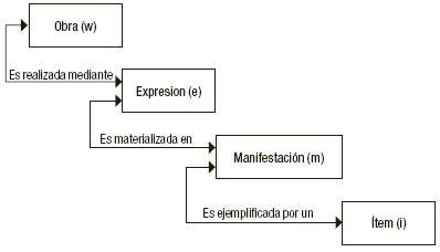 Al respecto, Tillett24 asegura que a causa de esta regla era imposible describir otro tipo de materiales que tuvieran particularidades físicas distintas a las monografías que tenía en la mano el catalogador, por ejemplo, los CDROM, los multimedia o los recursos electrónicos. Es decir, en términos del modelo conceptual, la descripción se iniciaba a partir de la copia para llegar a la información acerca de la manifestación, de modo que, de continuar con ese método, probablemente se seguiría perdiendo información relativa a la propia manifestación.