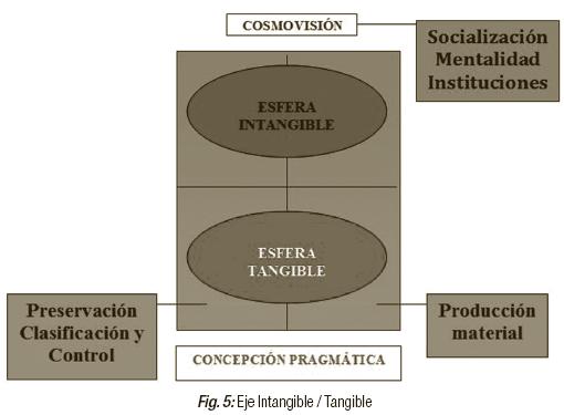 2. Igualmente, tendríamos oposiciones secundarias, como la que toma el atributo de la tangibilidad o intangibilidad de los conceptos que se estructurarán. Así, se forman las siguientes Esferas, que se oponen en la siguiente Figura:
