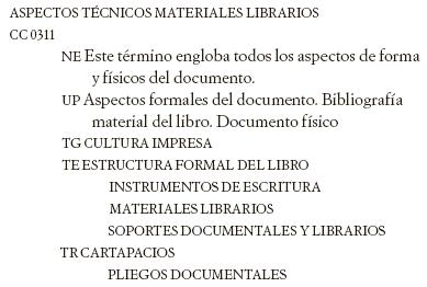 Y como se puede comprobar, también tiene los mismos TE que en el mapa conceptual: Materiales Librarios, Soportes Librarios, Instrumentos de Escritura...