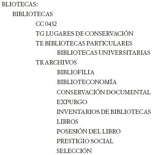 El cual, en el tesauro, se ve de la siguiente forma en el descriptor BIBLIOTECAS:
