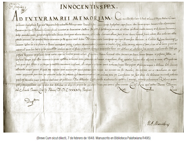 Breve Cum sicut dilecti, 7 de febrero de 1848. Manuscrito en Biblioteca Palafoxiana R495