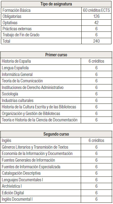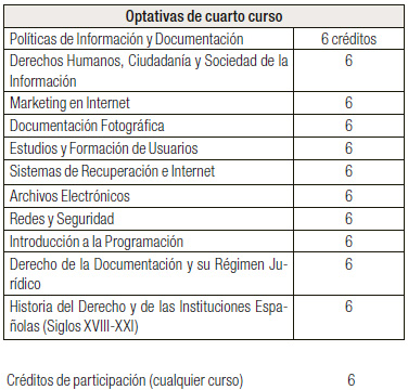 • Faltan créditos en asignaturas relativas a la organización y gestión de los archivos, las bibliotecas y los centros de documentación.