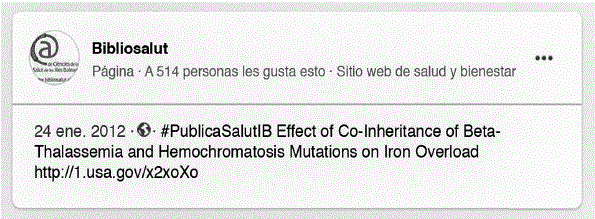 Es en abril de 2015 cuando se crea el portal de noticias infosalut.com (Páez et al., 2016), un servicio de Bibliosalut, y entonces se decide que, además de hacer difusión de un documento, se haría también una noticia con información sobre los autores pertenecientes al SSPIB, la institución a la que pertenecen, otros centros no SSPIB, información de la revista y una traducción del resumen del inglés al catalán y castellano, si éste está disponible en la base de datos. También se incluyeron los datos de la referencia bibliográfica, enlaces de Bibliosalut para poder consultar el texto completo si la revista pertenece a la colección de la biblioteca, o solicitarlo al Servicio de Obtención de Documentos (Figura 3). En este momento, se decidió dejar de utilizar Google+, debido a su escaso uso por los usuarios de redes sociales.