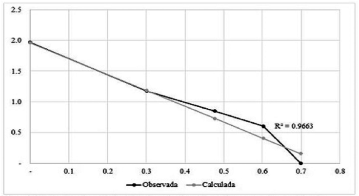 Se utilizó el método de mínimos cuadrados, el cual permite estimar los parámetros en una ecuación mediante la minimización de la suma de los cuadrados de las diferencias entre los valores observados y los correspondientes a la ecuación de predicción (Canavos 2001), para llevar a cabo la operación del valor de n ajustado a los datos observados, aplicando la fórmula siguiente: